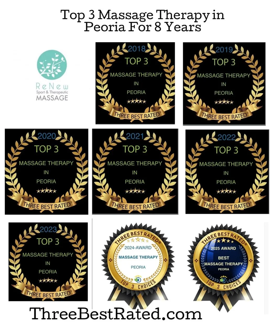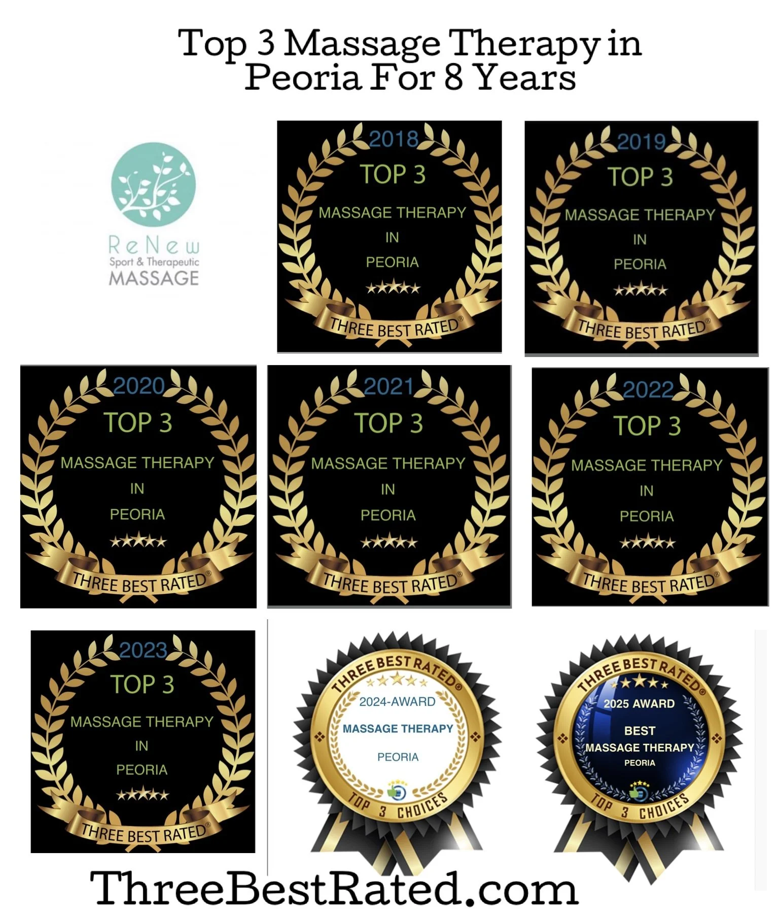 We are conveniently located in downtown Peoria on the beautiful riverfront. We are are walking distance from most downtown hotels, Caterpillar, OSF, Carle Health, 0.9 miles from the Peoria Civic Center and 1.2 miles from Dozer Park. Listed as one of the Top 3 Massage therapy in Peoria, IL for the last 8 years by Three Best Rated.com